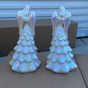 Valerie Parr Hill Set of 2 Illuminated Iridescent Porcelain Angels