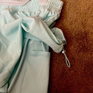 Casual shorts or workout shorts. Layered biker short underneath with phone pocket. Also has toggles on sides to cinch up shorts if you choose: