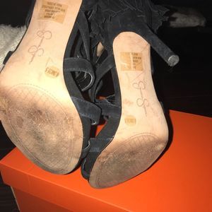 JESSICA SIMPSON || Bregan Suede Lace-Up Fringe Pumps in Black - SZ 6.5