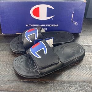 NWT Men’s Champion Mega Slides Athleticwear Black with Logo