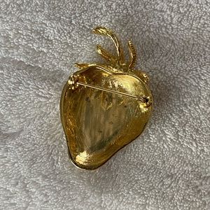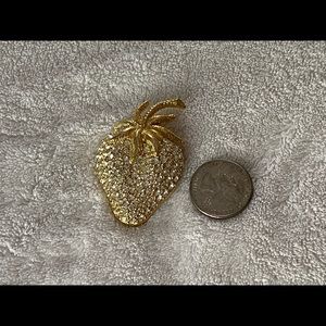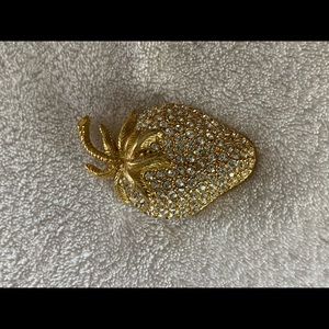Absolutely gorgeous strawberry gold tone and clear rhinestone pin/brooch. Great vintage condition. All stones are intact. There is a very small marking/hallmark on the back but I wasn’t able to make out what it says. I am open to reasonable offers and have many jewelry pieces listed, so bundle and save! Thanks and happy poshing ☺️