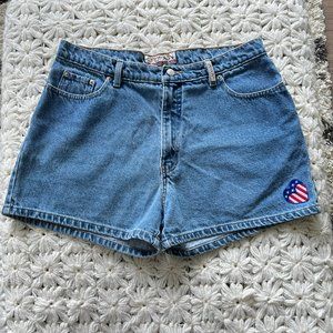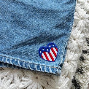 SASSON Vintage Heart Shaped Stars and Stripes Flag High Waisted Jean Shorts