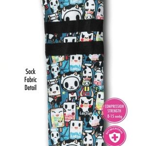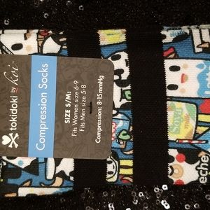 Brand New Tokidoki Compression Socks in size S/M: Fits Women size 6-9. Compression: 8-15 mmHg. 47% Polyester, 30% Nylon. 18% Combed Cotton, 5% Lycra. These socks are antimicrobial and are specialized to help improve circulation and to reduce muscle fatigue. Hello Kitty not included. Price is firm. Bundle and Save on Shipping.