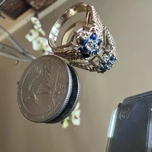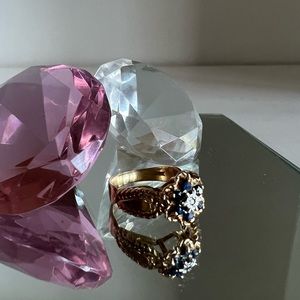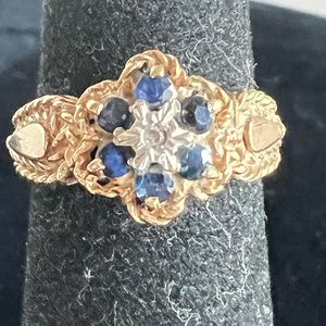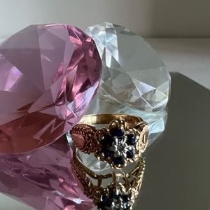 Vtg 10k yellow gold sapphire diamond Italian ring⭐️