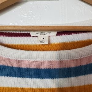 Westbound woman 1X striped colorful rainbow sweater sweatshirt top
