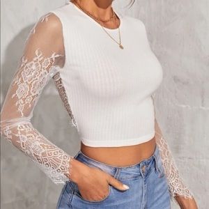 Boho Lace Sheer Mesh Tie Back Long Sleeves Crop Top