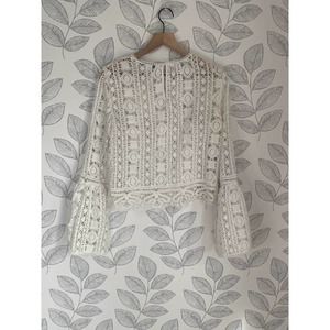 Forever 21 White Long Sleeve Sheer Lace Blouse, Size M