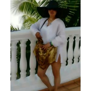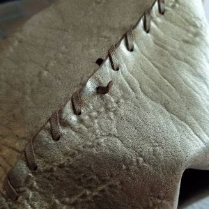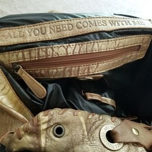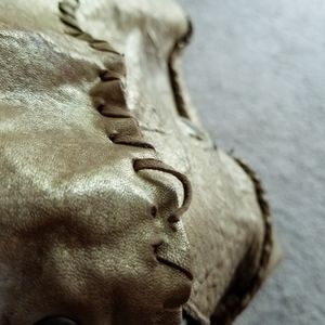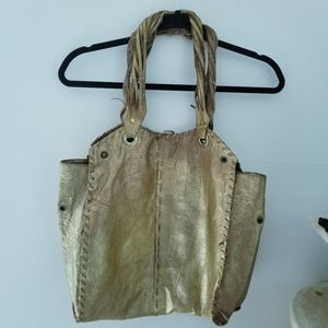 All You Need large gold leather bag is still in great condition see pics for wear. Beautiful boho bag with bronze hardware, magnetic closure. Leather buttery soft, This bag has been around the World love it!