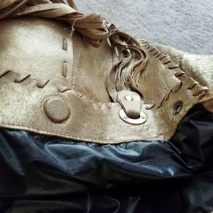 All You Need Comes With Me Large Vintage Gold Leather Boho Bag