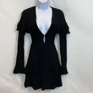 For Love and Lemons Claire Deep V mini dress size XS in black size XS