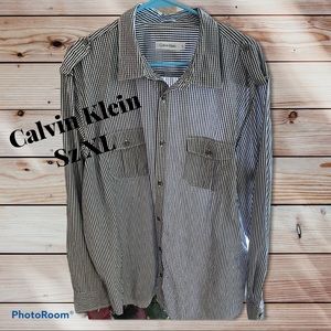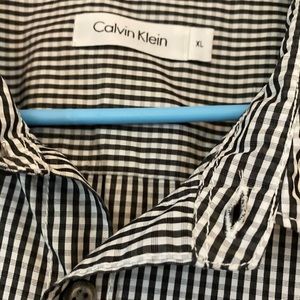 Calvin Klein Men’s button down shirt small black and white plaid print, front button down, front pockets