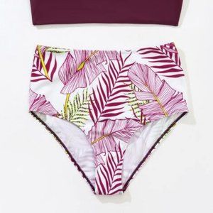 Leaf Print High Waisted Bikini Swimsuit with trocial print