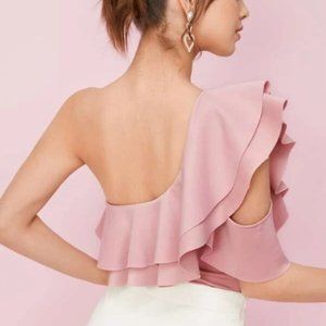 pink One Shoulder Layered Ruffle Bodysuit