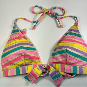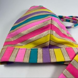 Victoria Secret Bikini Top Multi Color w/ Gold Stripes, Padded w/Back Clasp