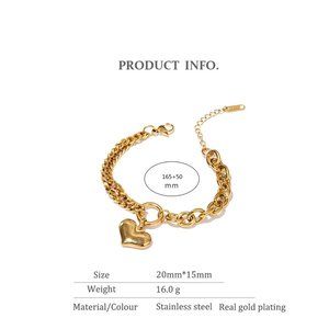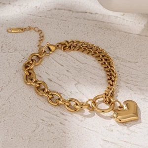 ^NEW 18K Gold Plated Chunky Link Chain Heart Circle Bracelet