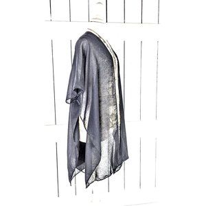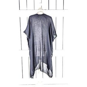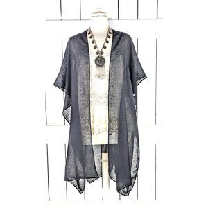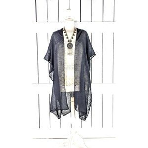 Solid black sheer gauzy cotton kimono cardigan cover up