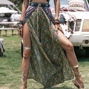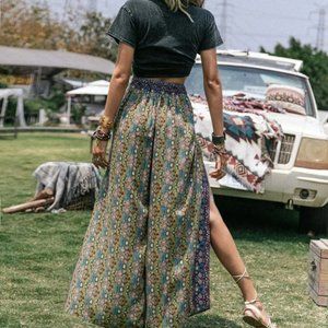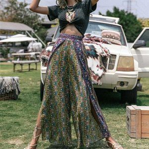 Coachella Festival Boho Floral Print Wrap Wide Leg Pants Without Belt