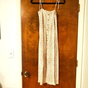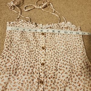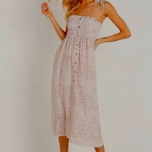 EUC. Suki is a sleeveless midi length floral dress with a column silhouette. It features a square neckline, button down front, shoulder ties, smocked bodice and front slit. Unlined.
