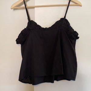Black tank with button front and small ruffle. Adjustable straps. Never worn