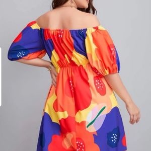 New Caribbean floral print, puffy sleeves, high waist. length 34.6 inch, Bust 51.2 inch, Waist 38.6 - 58.3 inch, Sleeve length 12.5.