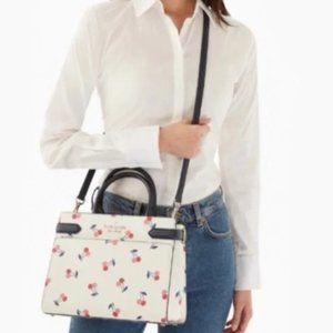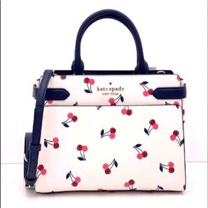 NWT Kate Spade Dancing Cherries Leather Shoulder Bag Crossbody Cream White Blue