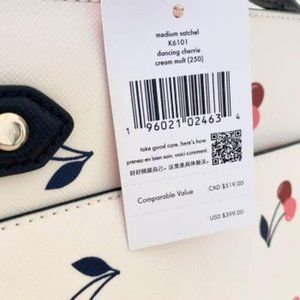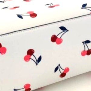 BRAND NEW & FABULOUS kate spade medium Dancing Cherries shoulder handbag / crossbody in coated canvas & saffiano leather in cream white & multi colored pattern. PERFECT purse with jeans, shorts, business, beach, skirts, slacks, dress, tank top, t-shirt, leggings, yoga pants, Althleisure, Leisurewear, Y2k look for Spring, Summer, Fall, Winter! This GORGEOUS satchel has quality KATE SPADE gold-toned hardware, and kate spade iconic logo in gold on front, and imprited in interior.