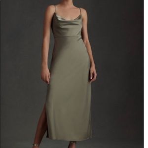 Beautiful moss colored bhldn dress, very popular satin cowl neck style.