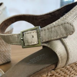 Lace cross straps, open toe, closed heel, wedge sandals, adjustable ankle strap