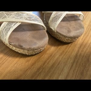 Tom’s White Lace Wedding Open Toe Wedge Sandals