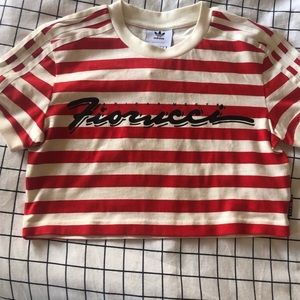 FIORUCCI X ADIDAS red striped crop top tee shirt