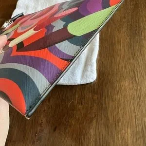 This is basically brand new. Comes with authentication cards and product care manual. Also included, detachable shoulder strap and dust bag, both original. Only damage to note is very, very minimal wear on the bottom two corners. See pictures for details.
