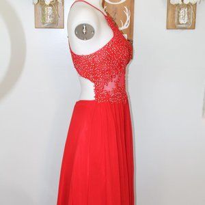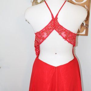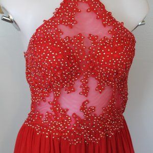 Blondie Nites Red Jeweled Halter Chiffon Dress