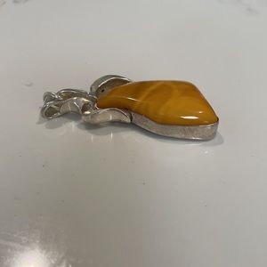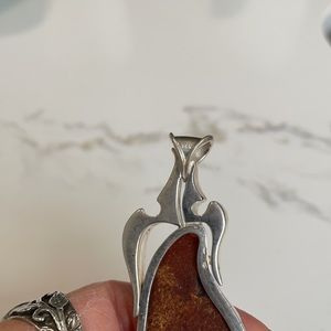 Beautifully crafted Amber pendant. 2.5” long, 1” wide, 925 silver marked on the bail. Amber is a powerful healer that draws disease from the body