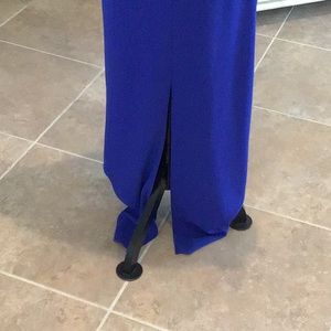 Talbot Runhof pret blue back zip gown, ruched, slit back, size 8