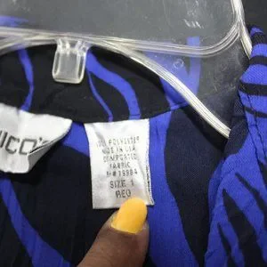 Chico's Royal Blue Black print 100 polyester button front shirt size 1