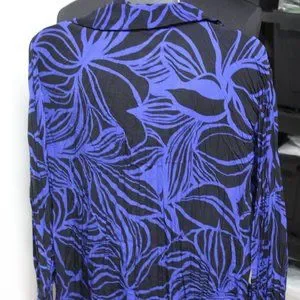 Chicos Royal Blue Black print 100 polyester button front shirt size 1
