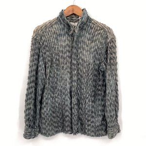 Ross Graison Mens Grey Stripe Textured Button Up Long Sleeve Shirt XL Elegant
