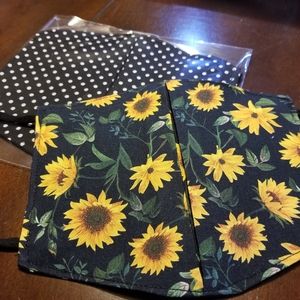 Black background with white polka dots print on one side. Black backgroundwith beautiful golden sunflowers on the other side.