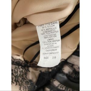 EUC size 7/8 sleeveless dress from Windsor. This dress has a beige lining with matching tulle in the skirt to add volume, as well as a gorgeous, classic black lace overlay and ribbon tie waist. There is a zipper in the back.