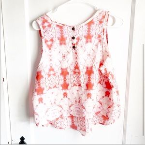 LUSH Cropped Tie Dye Pink Tank Back Buttons Semi Sheer Scoop Neck Size Medium
