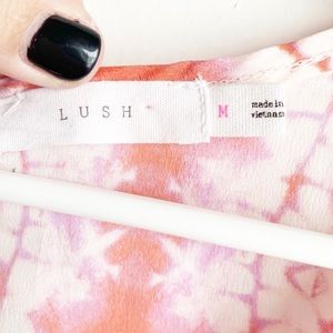 LUSH Cropped Tie Dye Pink Tank Medium Buttons Three buttons on back. Super cute piece. Bust: 20” flat, Waist: 21” flat, Hips: Flowy and Free (cropped), Length: 23”. Semi sheer. All measurements are approximate. Perfect worn on its own or layered in cooler weather. Good, preowned condition. Festival. Beach. Vacation. Concert.