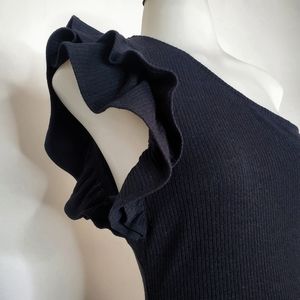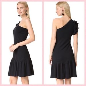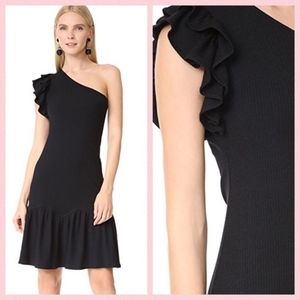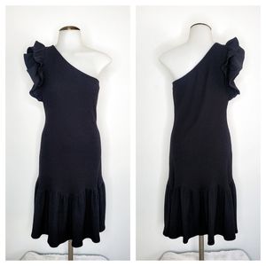 Rebecca Taylor Black One-Shoulder Ribbed Knee Lenght Flounce Dress