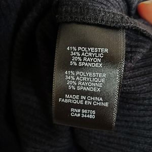 41% polyester, 34% acrylic, 20% rayon, 5% spandex