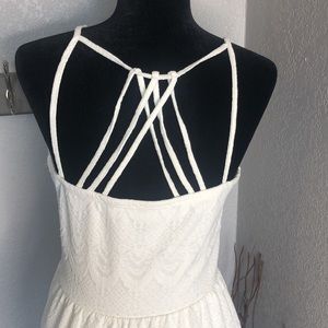 Excellent condition! No stains or holes. Material has a lace looking pattern. Beautiful straps back. Has extra lining inside so not see through. Stretchy material. Bundle to save more!