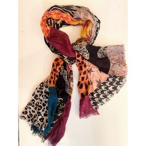 Mixed Print Oversized Scarf . 70in x 40in. 100% Viscose. Raw hem.