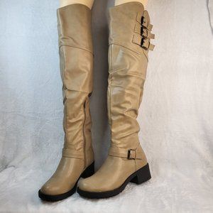 * Nature Breeze Over The Knee Light Khaki Riding Boots