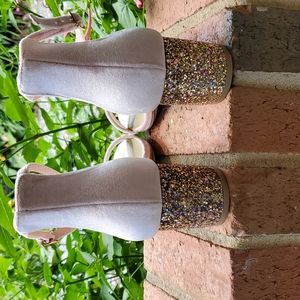 Cityclassified blush pink ankle strap sandals with sparkly block heels, size 10.