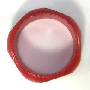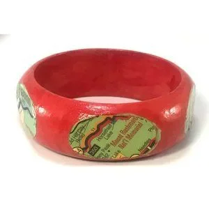 Altered red painted wood bangle bracelet with map collage of South Dakota sites including Deadwood, Black Hills, Mt Rushmore, and more.