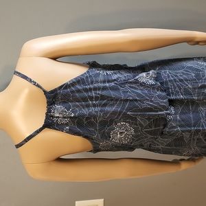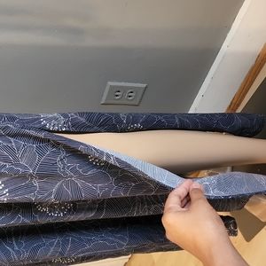 Maxi dress, elastic waist, v-neck, split on the left side on the dress.