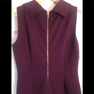 American Living Sheath Dress in a beautiful purple color. About 22โ pit-to-pit x 38.5โL. Hits at or below knee on most. Sleeveless chic with foldover collar in the front and exposed goldtone zipper in the back for easy on/off. Has stretch so can move with ease while maintaining the straight column, polished Mad Men-inspired look. Features some darting details by the rib. Feels super secure and yummy on. I never wore it. Excellent condition. Timeless silhouette. Ready for business, cocktails, all-season wear, at a happy affordable price ๐